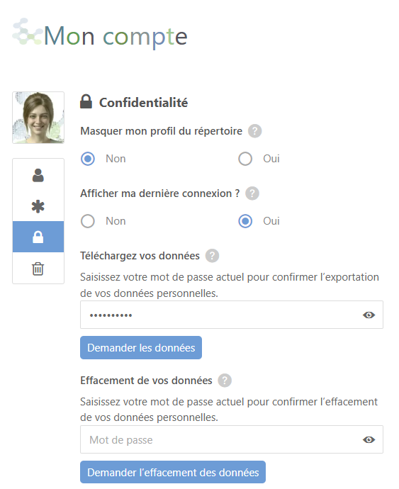 - télécharger dans l’onglet confidentialité le compte rendu des données enregistrées sur le blog, et paramétrer celles qui sont publiques ou masquées aux autres abonnés