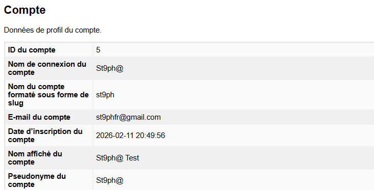 - Vos informations de compte :