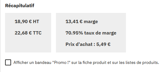 L’onglet prix dispose d’un récapitulatif permanent de l’état marchand de votre produit.