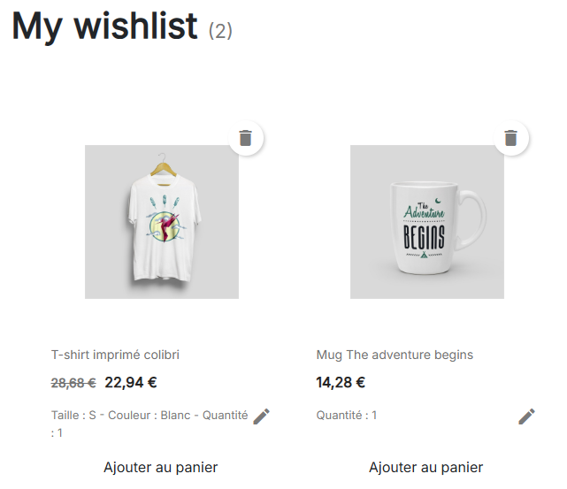 - L’ajout à la liste d’envies désormais activée sans avoir à ajouter un module spécifique