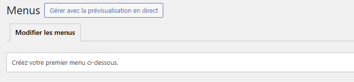 Vous devriez normalement voir une invitation à créer votre premier menu :