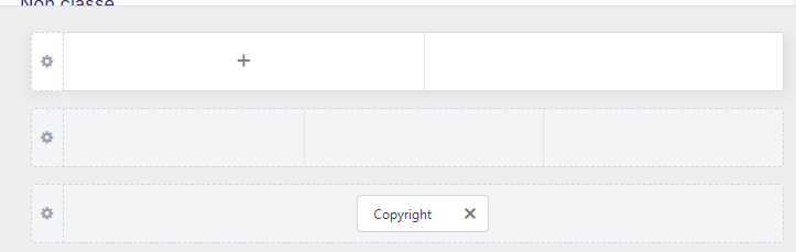 En cliquant sur le + d’une des zones du footer, vous pouvez insérer des blocs ou des liens à votre convenance