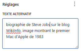 Le référencement de vos images ne peut se faire que si votre balise alternative (Alt) notée parfois « texte de remplacement » est renseignée avec des mots clés.